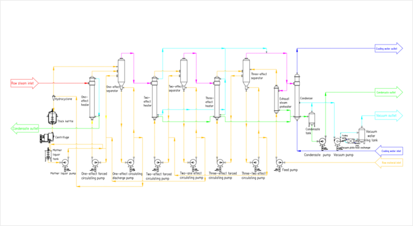 Die Multi-Effekt-Verdampfung ist eine traditionelle energiesparende Verdampfungstechnologie, die den Energieverbrauch des Systems durch Nutzung der Energie pro Erwärmung reduziert.Dampf ist hauptsächlich der Energieverbrauch der Multieffektverdampfung und eignet sich besonders für Betriebsumgebungen, in denen ausreichend Dampf vorhanden ist und der Strom knapp ist.Es wird häufig bei der Verdunstung, Konzentration, Kristallisation und Abwasseraufbereitung in vielen Branchen wie Medizin, Lebensmittel, chemische Industrie, Druckerei und Färberei usw. eingesetzt.